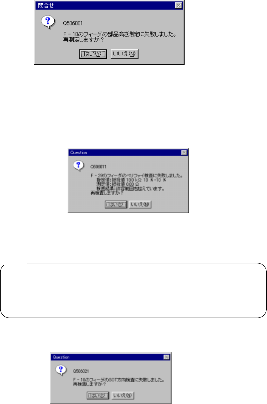 <はい>を選択すると,検査を失敗したフィーダの部品を再検査します。