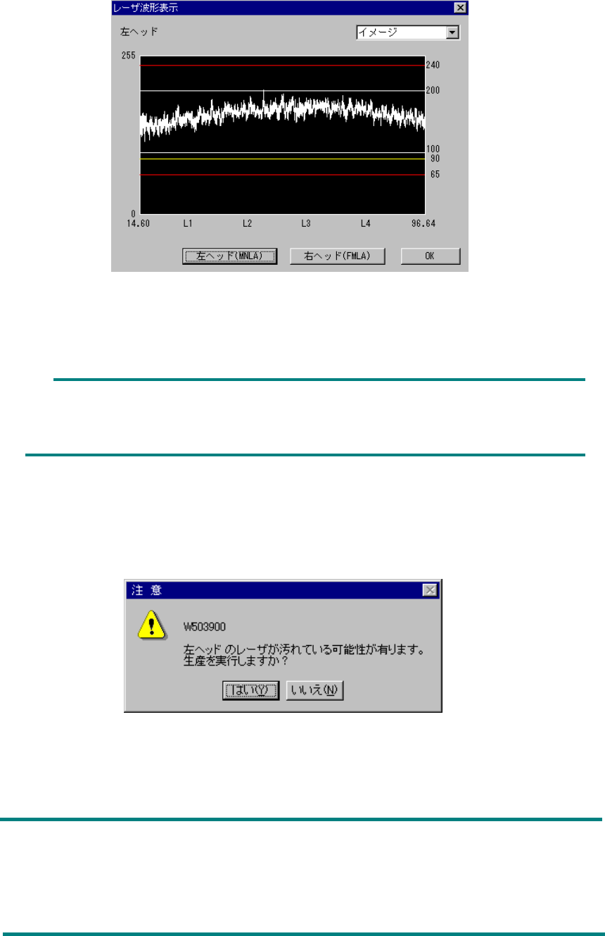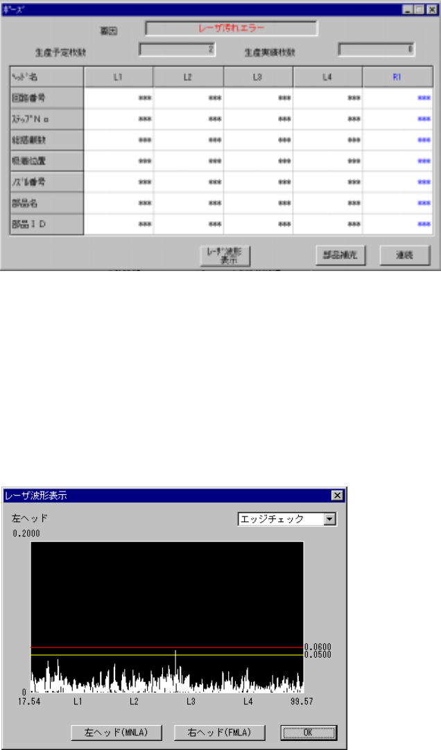 ※ <レーザ波形表示>ボタンは、一時停止画面およびリトライリスト画面に表示されます。<