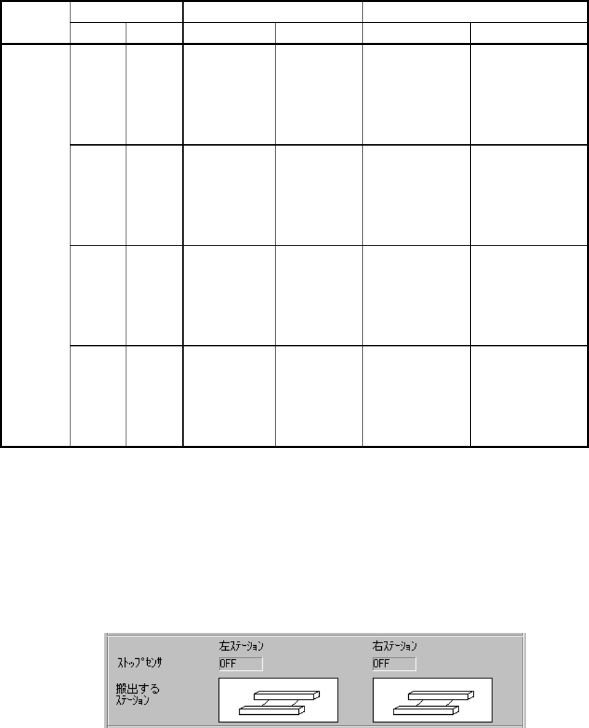 6 - 77 ● 搬送路上に基板 がある場合とない場 合、 生産中断時の 搬送路情報状態がわかる場 合とわからな い場合によって、 生産再開 ダイアログの、 生産動 作の選択が不可とな る場合が有ります。 以下 にその表を示します。 表 表 表 表 6-4- 15-1. 生産動作の選択一覧表 生産動作の選択一覧表 生産動作の選択一覧表 生産動作の選択一覧表 搬送路上 生産中断時の搬送路情報 生産動作の選択 継続生産 左 右 …