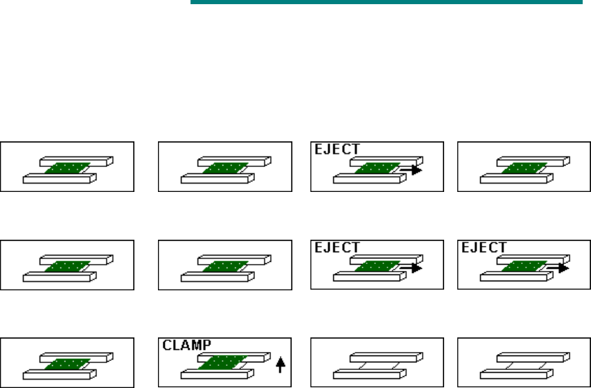 6 - 85 Ⅰ . 継続生産ファイルがある場合 継続生産を行い、再クランプ後生産 搬送路上基板 生産中断時 搬送路基板 搬送路上の状態図 No. 継続 生産 生産動作 左 右 左 右 左 右 実行後の動作 ① 有り 有り 再 クランプ 後生産開始前に基 板搬入を行わず継続生産 ② 有り 無し エラー ③ 無し 有り エラー ④ 無し 無し − − 選択不可 ⑤ 有り 有り 情報 無し 情報 無し 再 …