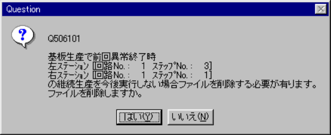 ここで、<はい>を選択した時は継続生産データを削除します。(実際に削除されるのは