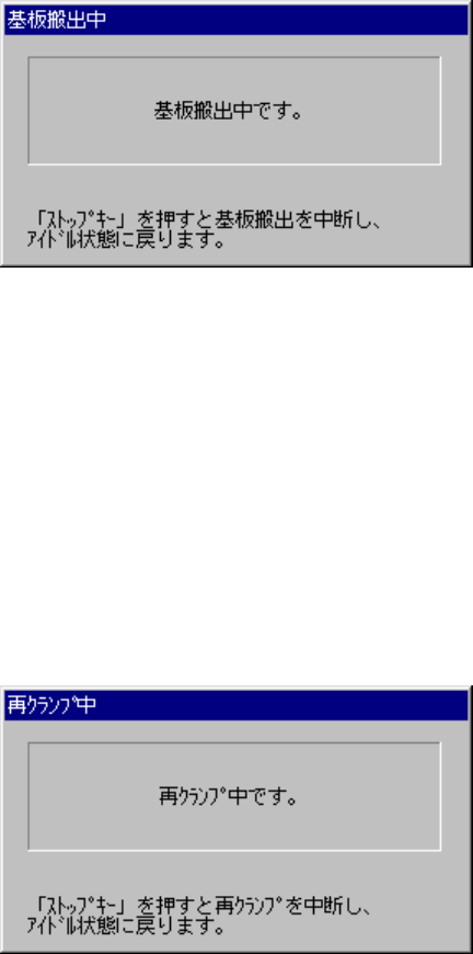 が押下された場合、再クランプ中ダイアログが表示され、基板を再クランプします。搬出動作が