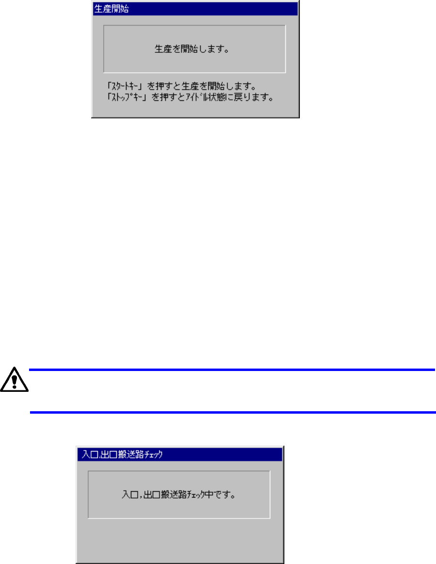 は、新規生産動作前に、入口,出口搬送路チェックダイアログが表示され、生産開始前に入口,出