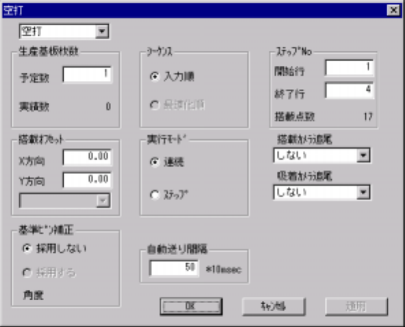 基板生産条件ダイアログ・試打ダイアログ・空打ダイアログの切替えが行えます。
