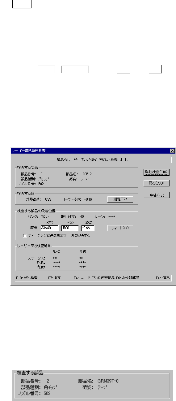 レーザ高さ単独検査ダイアログレーザ高さ単独検査ダイアログ