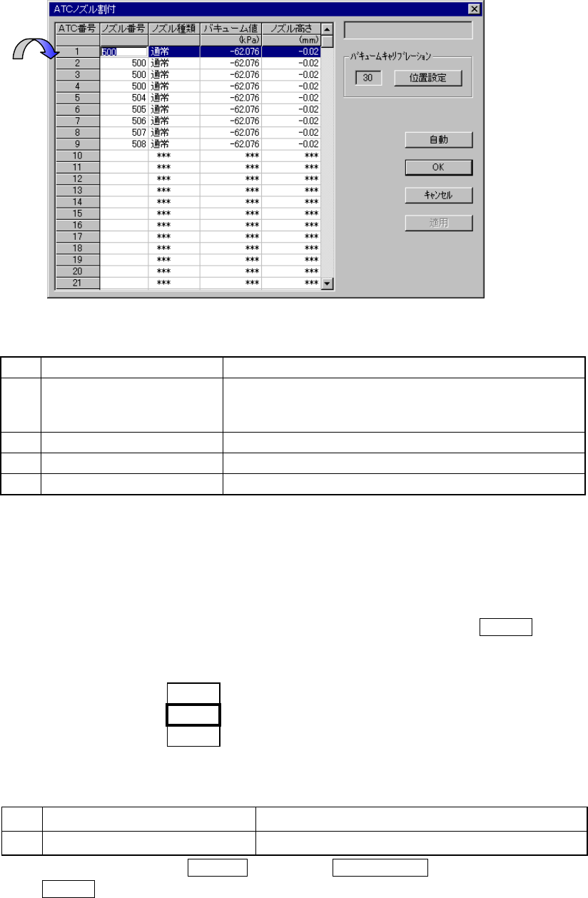 具体的には、ATC ノズル割付け設定ダイアログで装着可能 ATC のノズル番号を消去し、