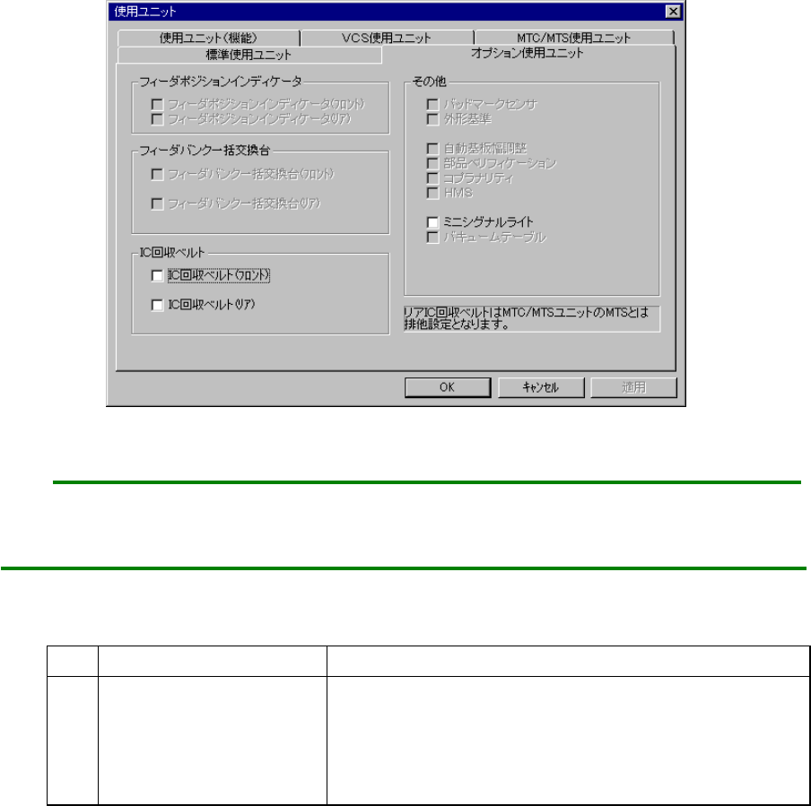 オプション使用ユニット設定のダイアログ(表示例.オプション使用ユニット設定のダイアログ(表示例.