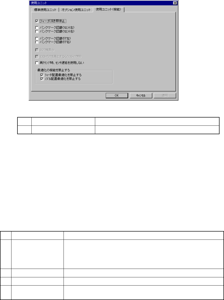 使用ユニット(機能)設定のダイアログ