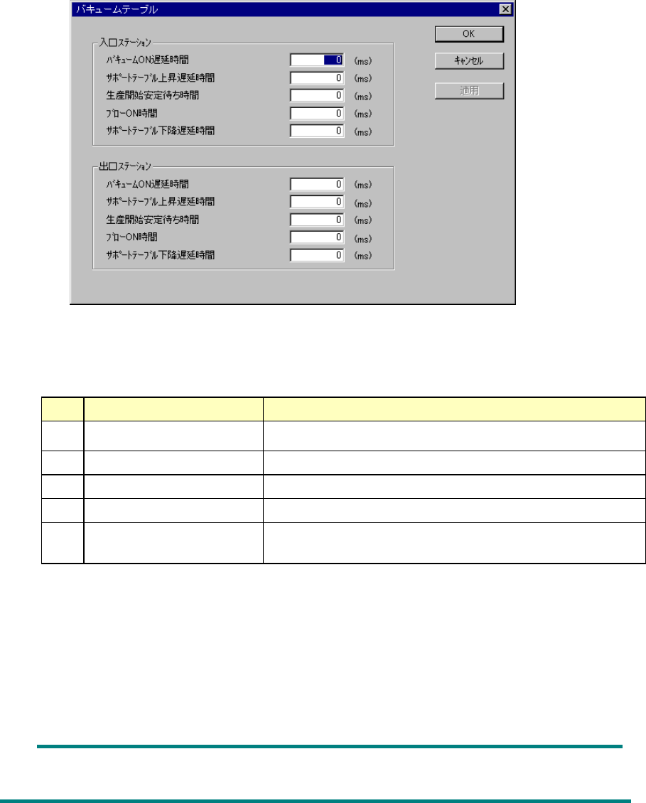 バキュームテーブルを選択すると、図 7-2-2-10-1 のバキュームテーブル設定ダイアログが表示され