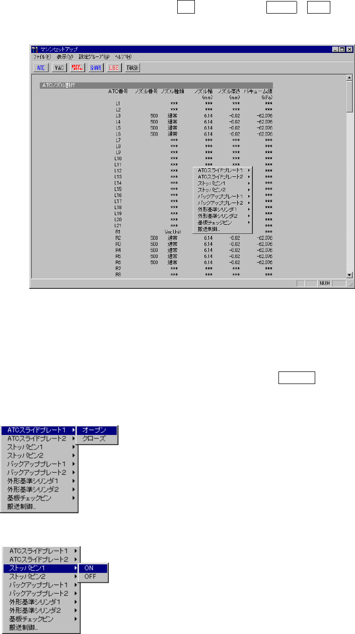 マシンセットアップの入力中,メカを駆動する必要がある場合は,ポップアップメニューにより行