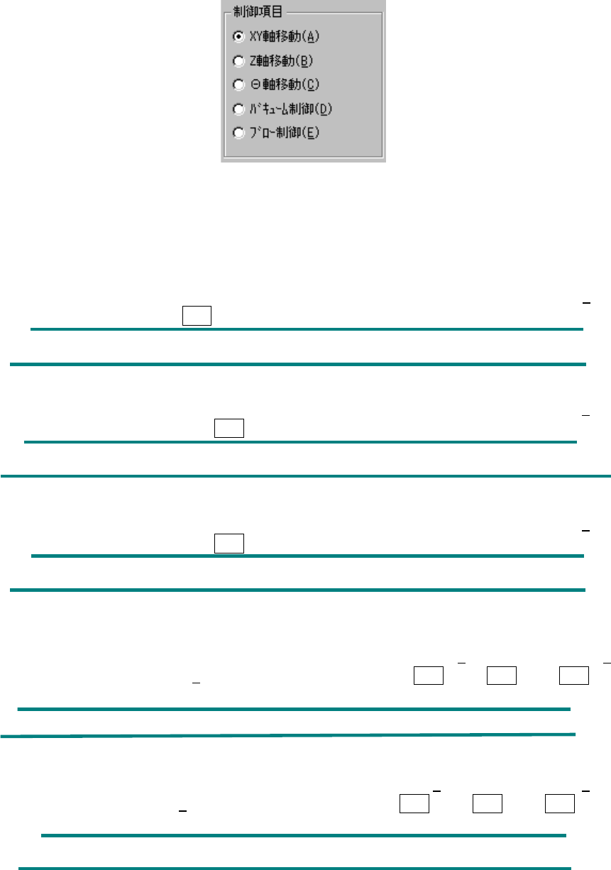 8 - 10 (2) 制御項目 制御項目をラジオボタンにより選択します。 (3) 制御ボタン 制御ボタンにより制御項目を実行します。 制御ボタンの表示は,制御項目により異なります。 1) XY 軸移動 制御項目の“ XY 軸移動”がチェック されているときに,移動先座標を入力して<実行( 1 )> ボタンを選択かまたは, F3 キーを押すと,選択されている制御ユニット基準で移動します。 座標の表示は,移動完了時に更新されます。 2)…