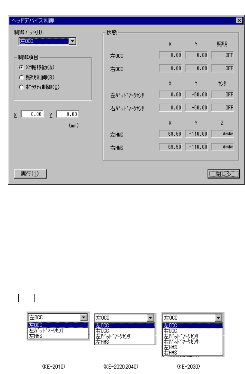 ヘッドデバイス制御ダイアログヘッドデバイス制御ダイアログ