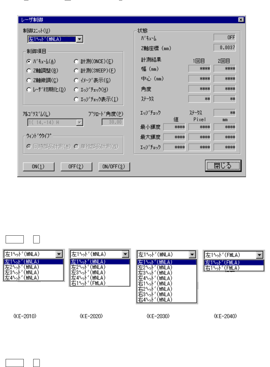 )][ヘッド(H)][レーザ制御(L)...]を選択すると,下記のレーザ制御のダイアログ