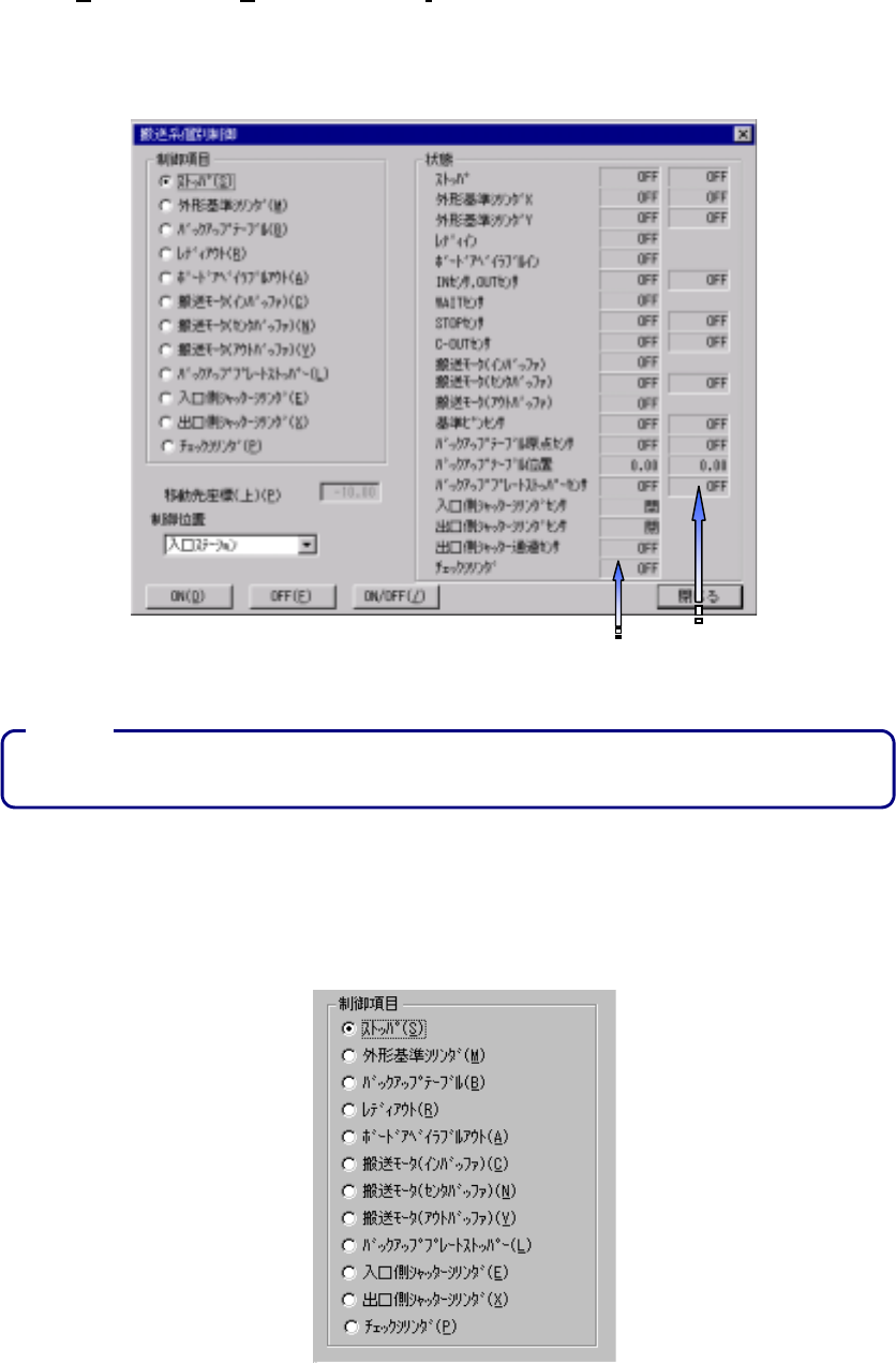 搬送系個別制御ダイアログ搬送系個別制御ダイアログ