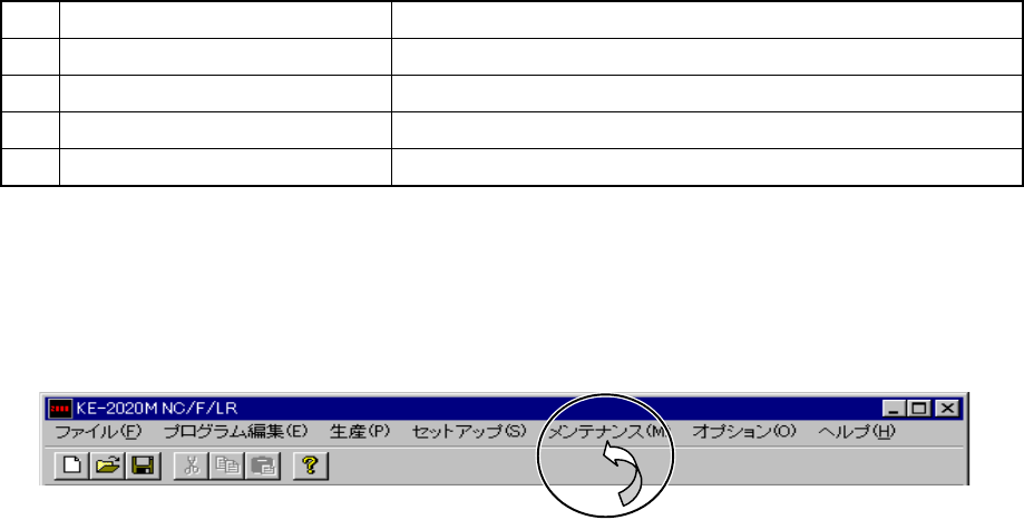 メイン画面のメニューバーから、「メンテナンス」を選択後、各画面を呼び出します。