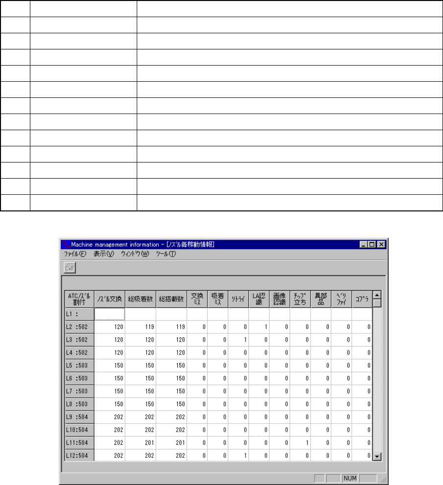 メニューバーの [ウィンドウ(W)−ノズル毎稼動情報] を選択すると,図 9-4-5-1-1 が表示さます。