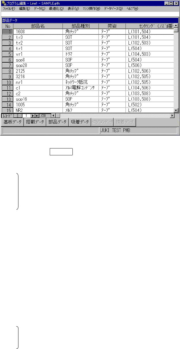 リスト表示画面は,複数の部品データの要約をリストの形で画面に表示します。リスト表示画面を