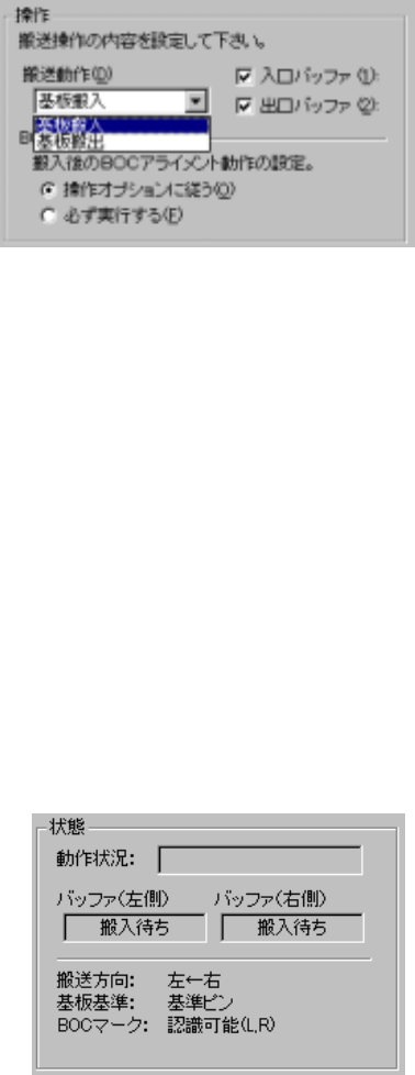 現在の基板搬送の内容および動作状況が逐次表示されます。