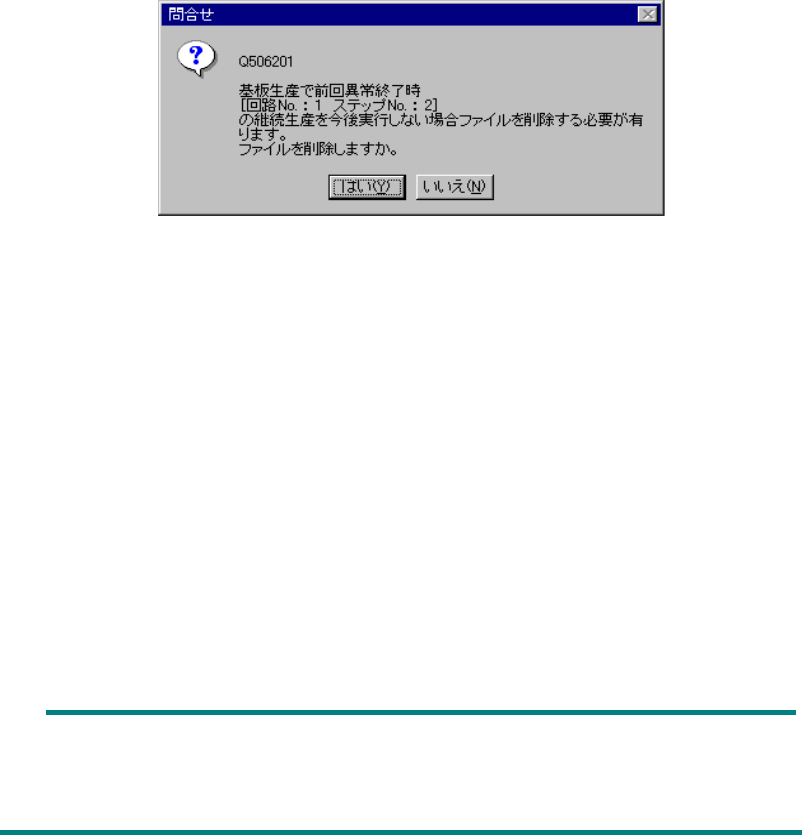 ここで〈はい〉を選択したときは継続生産データを削除します。前回異常終了時の継続生産は