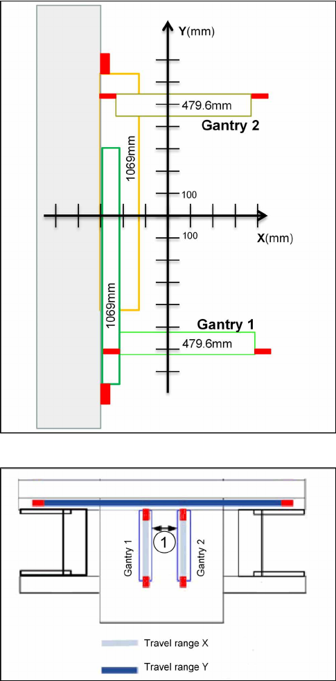Abb.179: Verfahrbereiche der X- und Y-Achsen