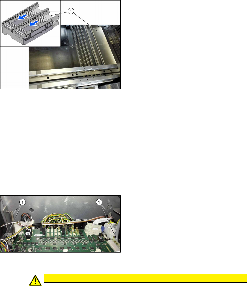 ► Entfernen Sie die Abstandsbolzen, mit denen das Abdeckblech über der Transportsteuerung