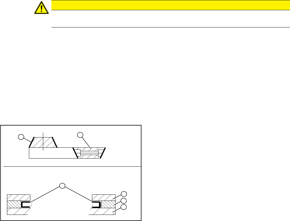 ► Schieben Sie die Zwischenstücke (mit eingelegten Fühlerlehren) auf Anschlag an das