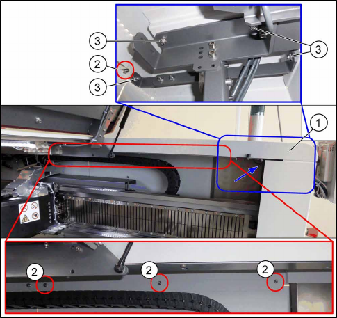 Serviceanleitung SIPLACE TX-Serie 06/2017 6 Portale 6.3 Kabelschlepp und Leiterplatten 101 Ausbau ► Schalten Sie die Maschine aus, trennen Sie diese vom Stromversorgungsnetz und sichern Sie die Maschine gegen Wiedereinsc…