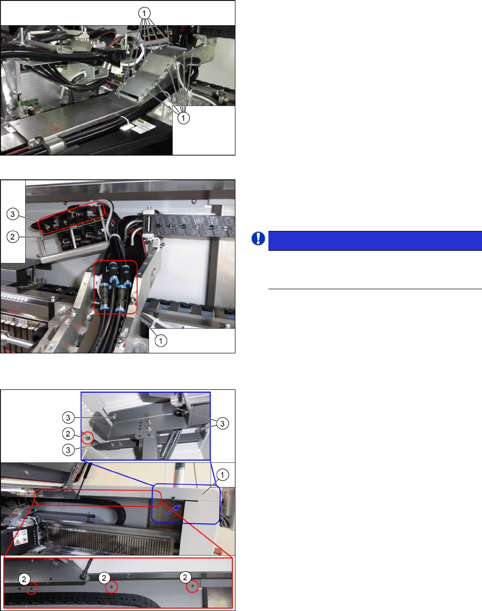 Serviceanleitung SIPLACE TX-Serie 06/2017 6 Portale 6.3 Kabelschlepp und Leiterplatten 111 Abb.132: Abdeckung ► Entfernen Sie die zwölf Schrauben (1) und neh- men Sie die obere Abdeckung ab. Diese Schrau- ben sind mit …