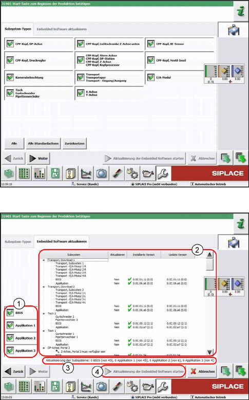 7 Transport 7.7 Platinen Serviceanleitung SIPLACE TX-Serie 06/2017 192 7.7.2 eSW Download (SW 70x) Abb.247: Bedienebene wählen ► Klicken Sie auf die Schaltfläche , um das Menü Einstellungen aufzurufen. ► Klicken Sie auf…