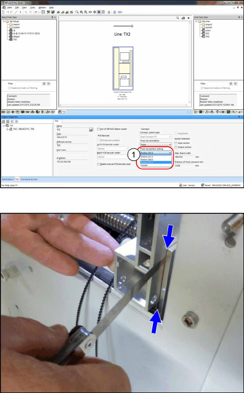 7 Transport 7.8 Feste Transportwange einstellen Serviceanleitung SIPLACE TX-Serie 06/2017 196 7.8.1 Transportwangen - Einstellungen Die folgende Darstellung zeigt einen Transport mit fester rechter Transportwange. Für Tr…