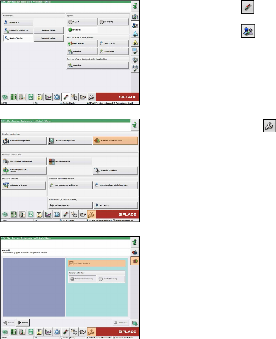 Serviceanleitung SIPLACE TX-Serie 06/2017 8 Bestückköpfe und stationäre Kameras 8.1 Fast Head Exchange 205 8.1.3 Abschluss des FHE an der Software ► Schalten Sie die Maschine ein. Nach dem Wiedereinschalten meldet die Ma…