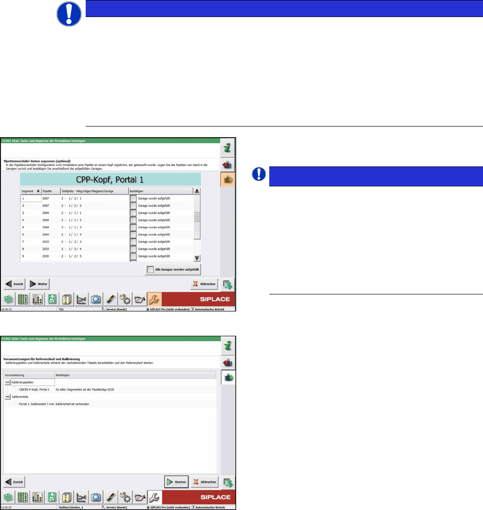 Ist der neu montierte Kopf mit Kalibrierpipetten ausgerüstet, so werden diese nach der