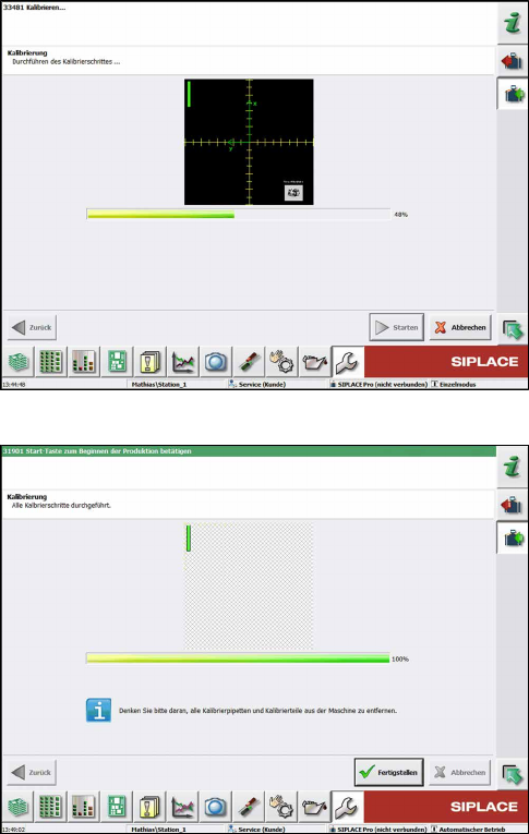 Serviceanleitung SIPLACE TX-Serie 06/2017 8 Bestückköpfe und stationäre Kameras 8.1 Fast Head Exchange 207 Abb.272: Kalibrierung durchführen ► Warten Sie, bis die Kalibrierung abgeschlossen ist. Abb.273: Kalibrierung f…