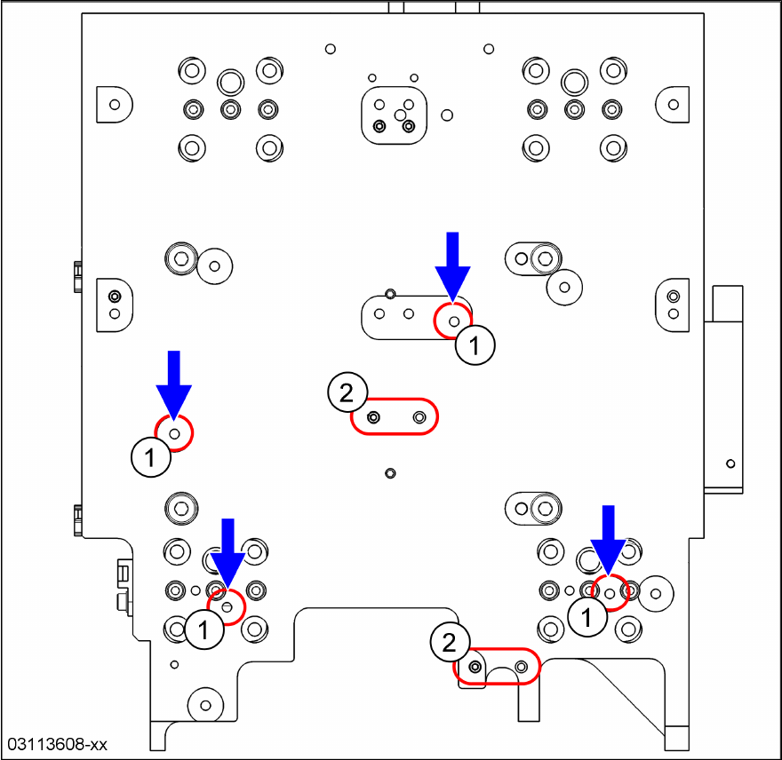 8 Bestückköpfe und stationäre Kameras 8.5 Montagepositionen auf der Kopfplatte Serviceanleitung SIPLACE TX-Serie 06/2017 222 8.5.5 Portal 1 - Befestigungspunkte für den Twin-Kopf Abb.296: Portal 1: Twin-Kopf 1 Befestigu…