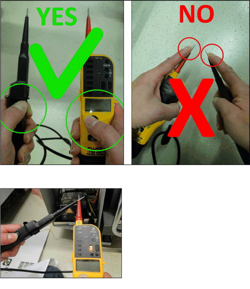 Abb.26: Korrektes und falsches Handling des Spannungsprüfers