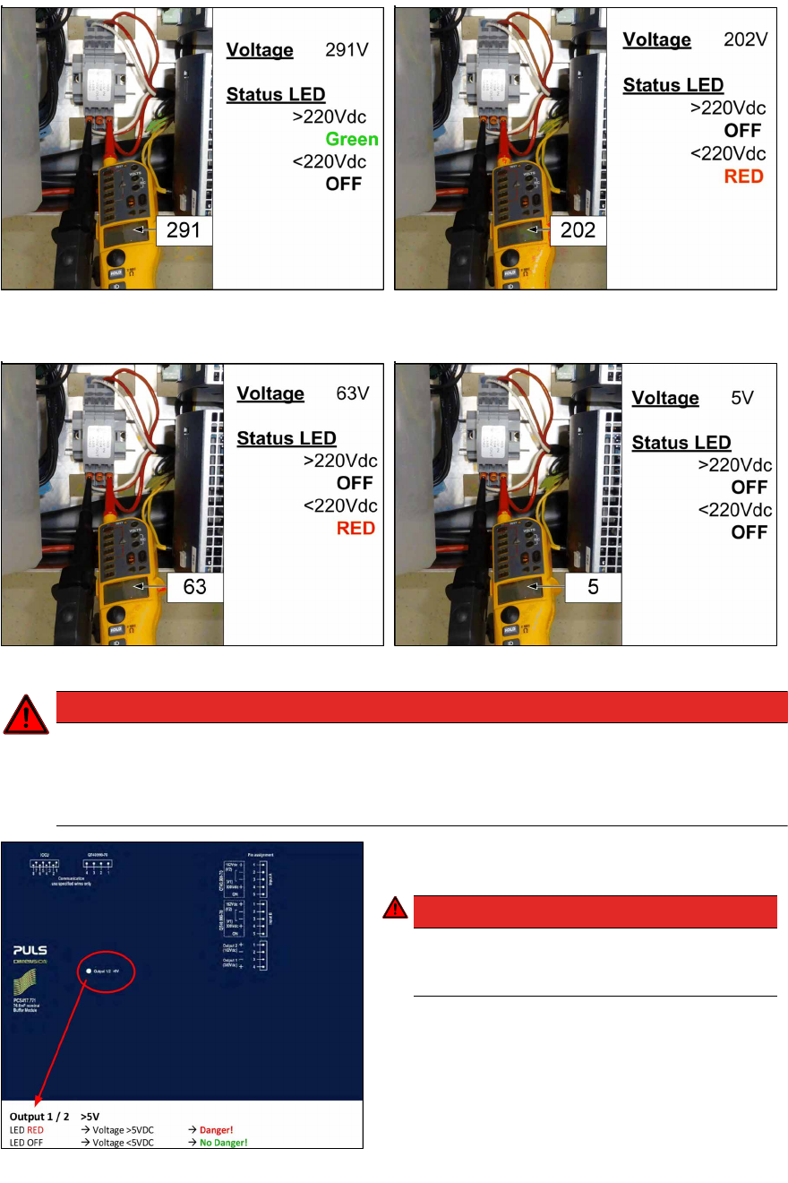Sobald die Spannung einen Wert von 220VDC unterschreitet, wechselt die LED-Anzeige am Netzteil!