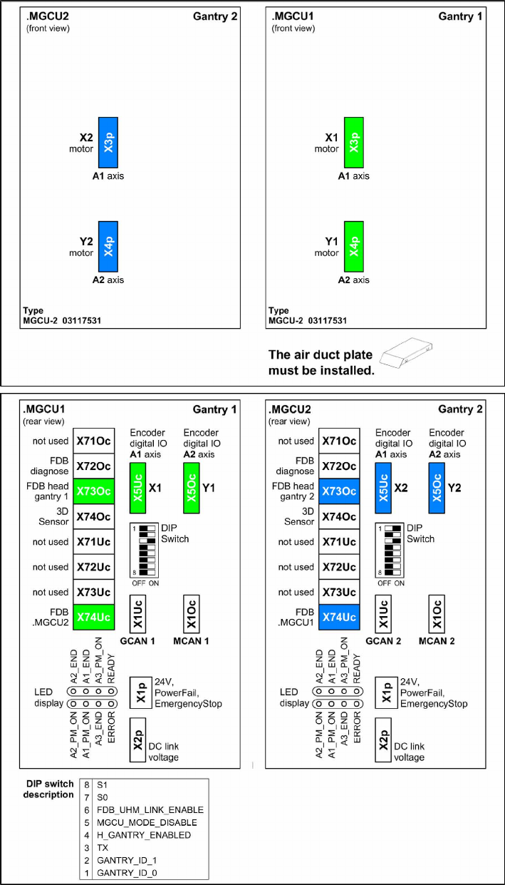 3 SMPS 3.5 MGCUs Serviceanleitung SIPLACE TX-Serie 06/2017 42 3.5 MGCUs 3.5.1 Übersicht MGCUs SIPLACE TX1/TX2/TX2i Standard Abb.34: SIPLACE TX1/TX2/TX2i Standard