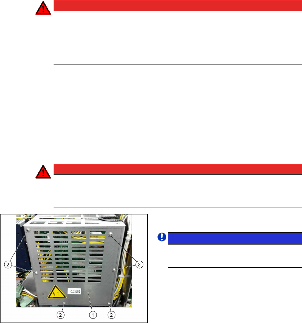 3 SMPS 3.6 Schütz-Sicherheitsabschaltung (CSB) oder deren Abdeckung tau- schen Serviceanleitung SIPLACE TX-Serie 06/2017 48 3.6 Schütz-Sicherheitsabschaltung (CSB) oder deren Abdeckung tauschen GEFAHR Hohe Spannungen In …