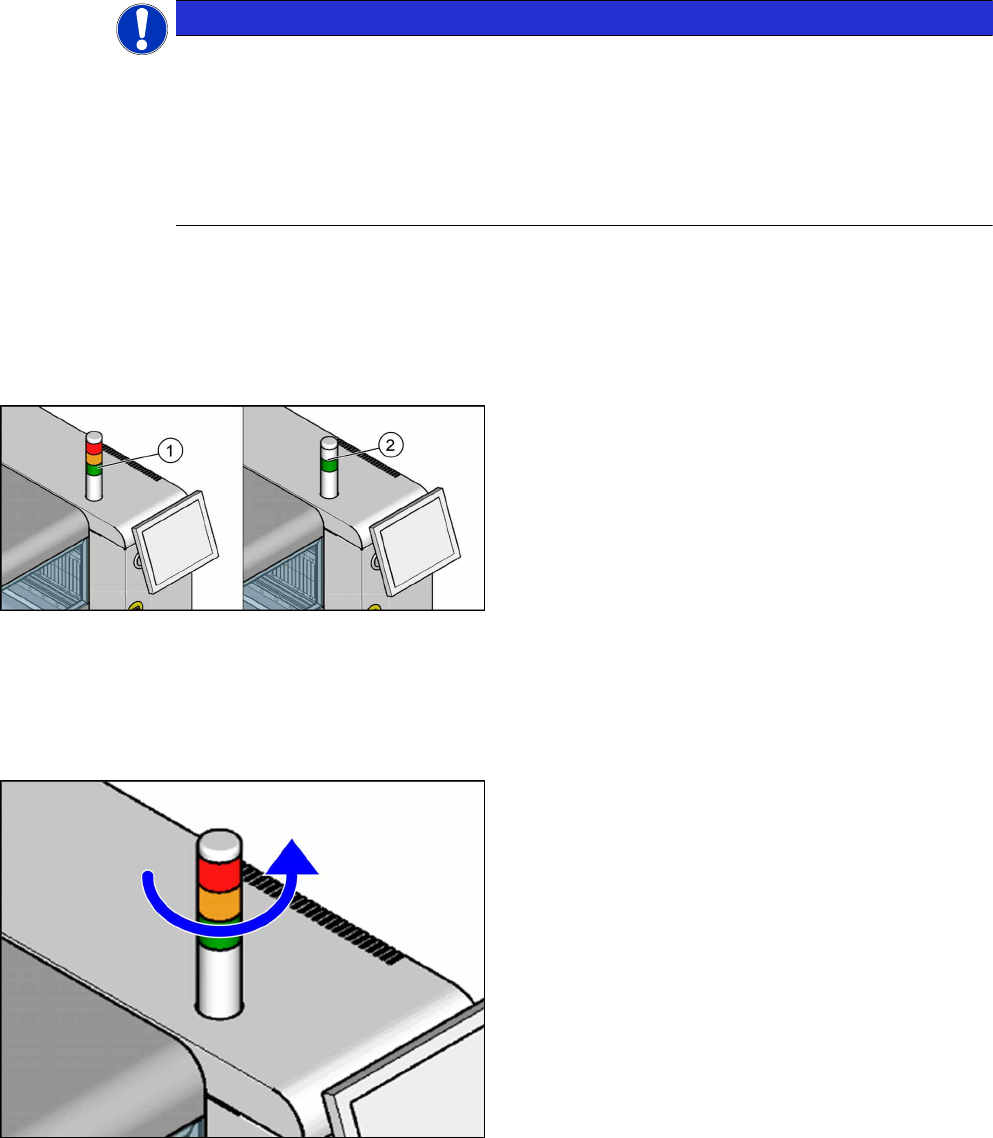 4 Elektrik und Steuerung 4.7 Meldeleuchte und Leuchtmittel Serviceanleitung SIPLACE TX-Serie 06/2017 74 Abb.79: LED-Modul mit Gehäuse ► Entnehmen Sie das LED-Modul (2) aus dem Ge- häuse der Meldeleuchte (1) . HINWEI…