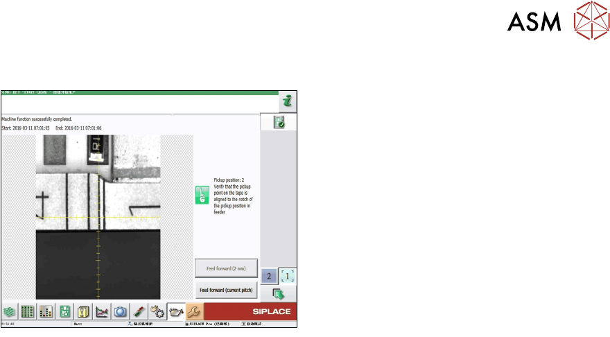 9 贴片机软件概览 9.7 维护界面 技术培训 FSE SIPLACE TX系列 01/2018 153 验证 - 供料器验证 此功能用于验证贴片机上供料器的拾取位置。 贴片机将对无偏移的实际拾取位置进行拍照,以 便客户清楚了解驱动系统相对于拾取位置正确与 否。
