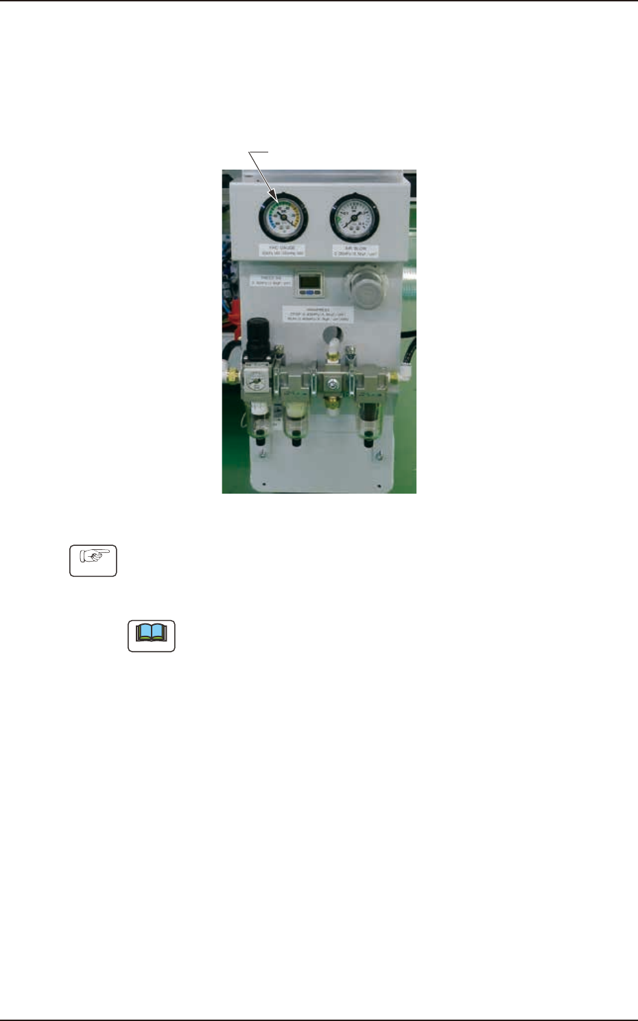 4OM-1750 1-22 1303-001 4.2 真空系統 4.2.1 真空圧の点検 周期:毎日(所要時間:1 分) 真空圧 Fig. 4A16 手順 真空圧を目視で確認してください。 真空バルブ全開時 : Min.-93kPa(Min.70cmHg)以上 運転時 : Min.-60kPa(Min.45cmHg)以上 ノート 真空圧が不足している場合は、真空経路のエア漏れ、または真空ポンプ の故障が考えられます。 4.2 真空系統