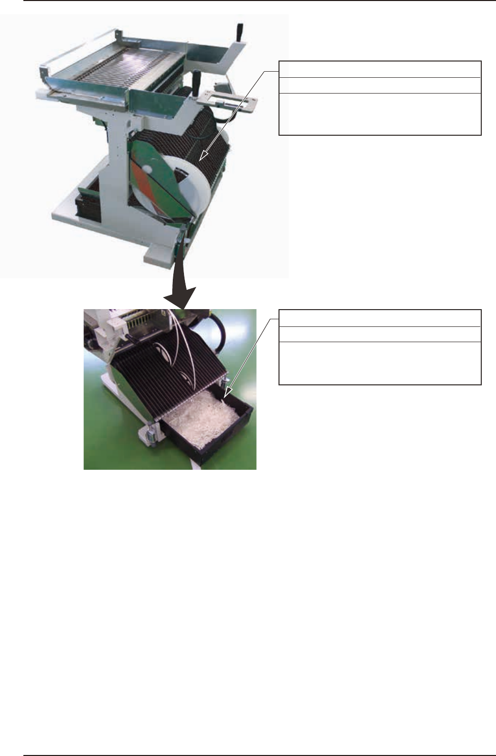 4OM-1750 1-30 1303-001 4.6 カッタ部 4.6 カッタ部 4.6.1 カッタユニット(2 か所)の給油 周期:3 か月ごと(所要時間:10 分) グリース:モリノックグリース AP1 カッタボックス Fig. 4A26 手順 (1) 正面カバーを外す。 (2) 新しいグリースをグリースガンを使用して、グリースニップルより 約 5cc 給油する。
