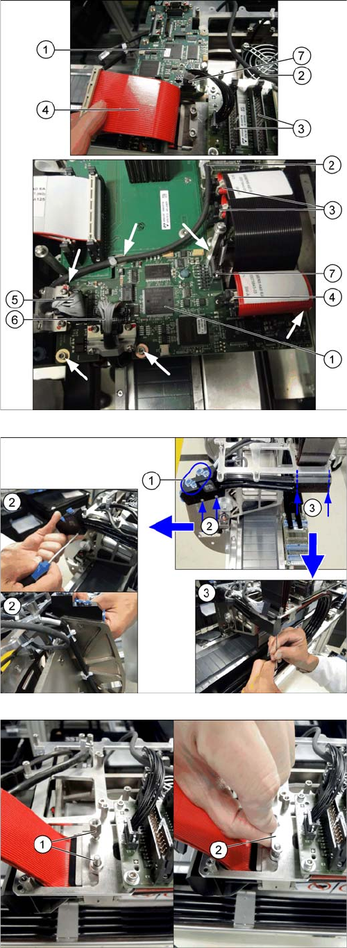 Service Work Conveyor 3.4.16 Replacing the X Trailing Cable Vacuu m [03075585-xx] Gantries Service Manual SIPLACE SX1/SX2/DX1/DX2 FS02 107 ► Unp lug the elec trical connec tions (3) and (4) to the Vision boar d spread sp…
