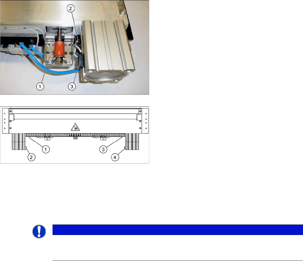 1 Position "in" (S2, S4) 2 Cutter stopper