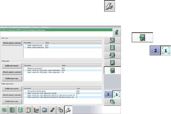If the motors for the automatic width adjustment or for the lifting tables are replaced, they need to be