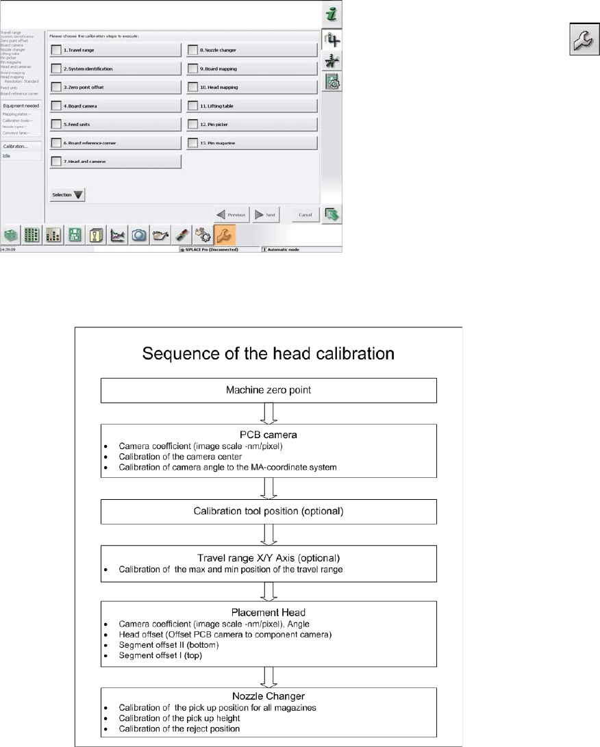 Settings 4.9.2 Calibration Other Settings Service Manual SIPLACE SX1/SX2/DX1/DX2 FS02 295 4.9.2.2 4 . 9 . 2 . 2 C a lib r a t in g t h e H e a d s a n d C a m e r a s ( S W 7 0 x ) Calibrating the Heads and Cameras (SW70…