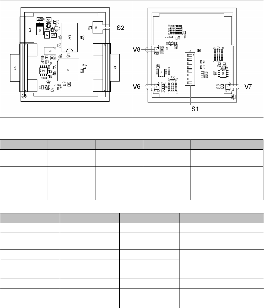 Boards with version status 01 and 02 are fitted with a TQ module. In this case, the DIP switching block