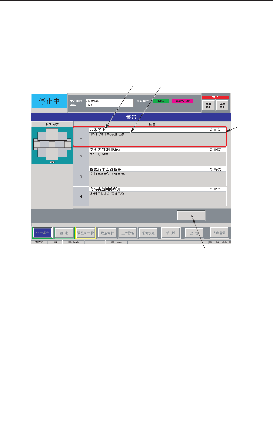 2-2 2. 2. 2. 2. 2. 警告 警告 警告 警告 警告 ( ( ( ( ( 启动向导 启动向导 启动向导 启动向导 启动向导 ) ) ) ) ) 2.1 2.1 2.1 2.1 2.1 关于警告 关于警告 关于警告 关于警告 关于警告 ( ( ( ( ( 启动向导 启动向导 启动向导 启动向导 启动向导 ) ) ) ) ) 界面 界面 界面 界面 界面 在装置误操作或异常发生后没有正确复位时,显示如下警告 ( 启 动向导 )…
