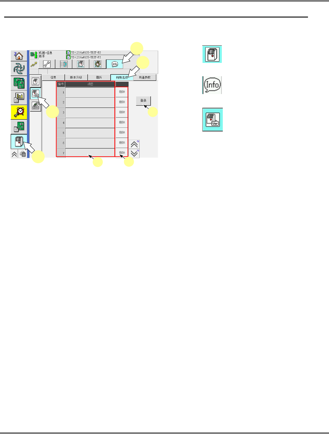 NPM X 系列 通用型转印装置 6.1 选项许可 MFTU-EJM9BC- MB-06N-00 Page 6-3 6.1.2 选项许可的登录方法 1 请准备好本公司发行的选择列表。 选择列表与使用许可书都与设备捆包 在一起。 选择列表和使用许可书请妥善保管。 2 请按动 < 特殊选项 > 画面的 [ 登录 ] 。 选择列表 选项号码 2
