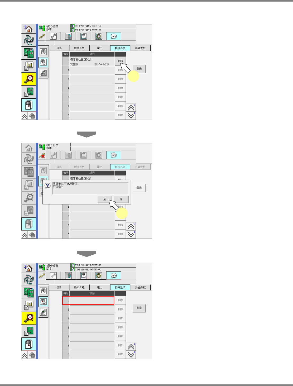 当显示出选项删除的确认信息时,请按